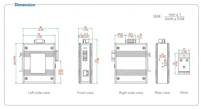 - Input voltage:12/24/48VDC(10.8~52.8VDC), supports reverse polarity protection