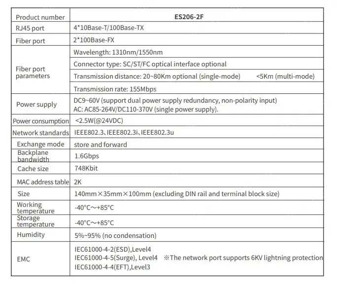 • 2 Ports 100M F(x) + 4 Ports 10/100M T(x) Din-Rail Unmanaged Industrial Ethernet Switch