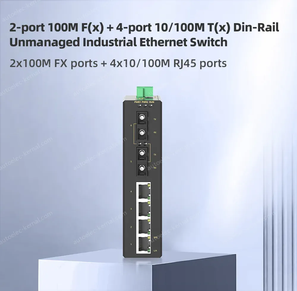 2 Ports 100M F(x) + 4 Ports 10/100M T(x) Din-Rail Unmanaged Industrial Ethernet Switch
