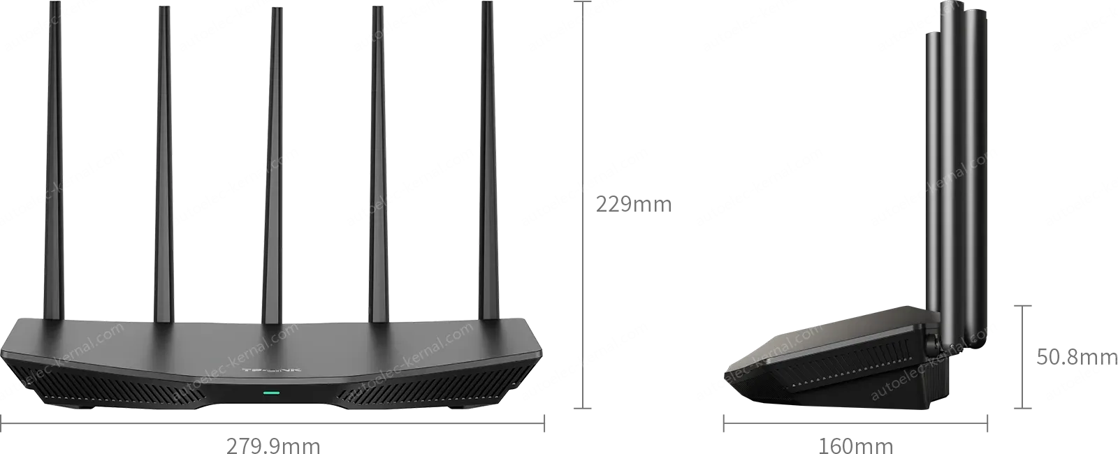 External omnidirectional antennas: 2 x 2.4G antennas, 3 x 5G antennas