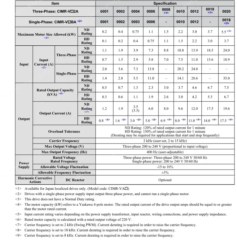 Max. Motor Capacity 2.2Kw;Rated Output Current 9.6A